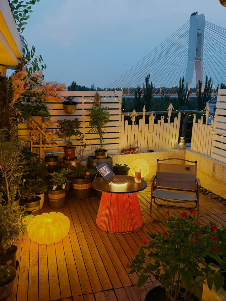 串灯、落地灯、小台灯,甚至蜡烛,都能让夜晚的露台变得浪漫。